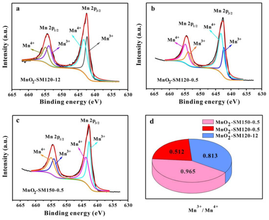 | MnO2-SM150-0.5 | 2p 3/2 Mn3+ | 642.60 | 36429.72 | 0.965 |