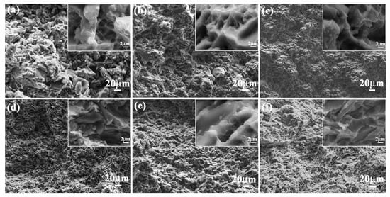 Fracture appearance of (a) Outer layer; (b) Middle layer and (c) Inner layer of bionic Meretrix lusoria shell composite material and (d) Outer layer; (e) Middle layer and (f) Inner layer of bionic Rapana venosa shell composite material.