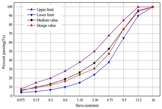 Asphalt concrete (AC)-13 gradation design used in this paper.