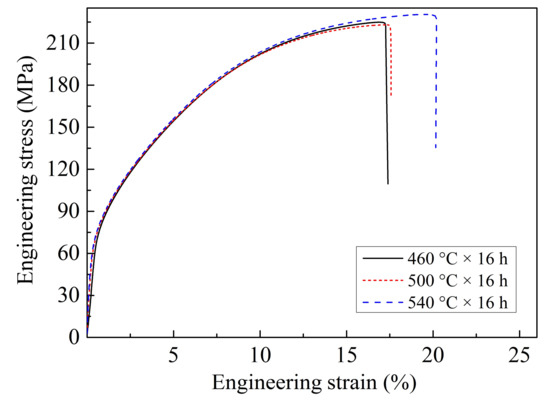| 540 °C × 16 h | 71.0 ± 0.5 | 230.0 ± 1.0 | 20.0 ± 0.5 |
