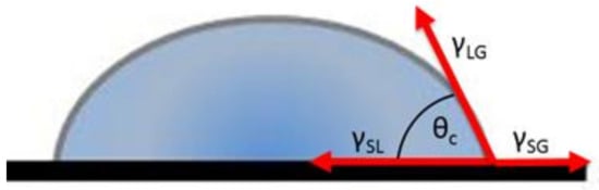 Therefore, the reduction of the energy required for the crystallization of the material in the heterogeneous process compared to the homogeneous depends on the contact angle of the material and is expressed by the Volmer coefficient f(θ) in Equation (7). Thus, the smaller is the contact angle of the material at which crystallization occurs, the lower is the energy required for this process [27].