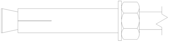 - European Organisation for Technical Approvals (EOTA). Guideline for European Technical Approval of Metal Anchors for Use in Concrete. Part Two: Torque-Controlled Expansion Anchors; European Organisation for Technical Approvals: Brussels, Belgium, 1997; Volume ETAG 001. [Google Scholar]