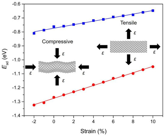 3.5. Strain-Dependent PAHs Adsorption