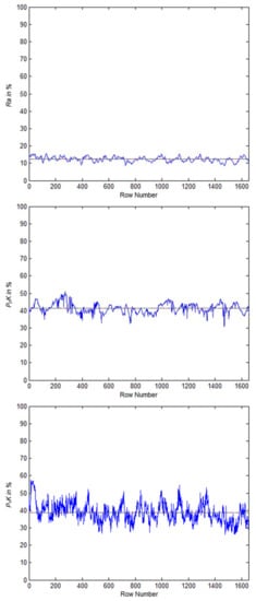 Figure 10 shows these metric values across ROI row number j. These intermediate plots illustrate the variability of the metrics over line profiles from top to bottom. The final metrics are averages of this data and deliver roughness estimates across the whole ROI rather than a few selected lines as in the case of laboratory equipment measurements.