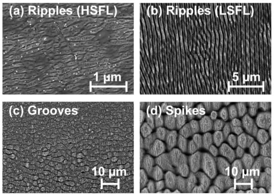 - Bonse, J.; Höhm, S.; Kirner, S.V.; Rosenfeld, A.; Krüger, J. Laser-induced periodic surface structures—A scientific evergreen. IEEE J. Sel. Top. Quantum Electron. 2017, 23, 9000615. [Google Scholar] [CrossRef]