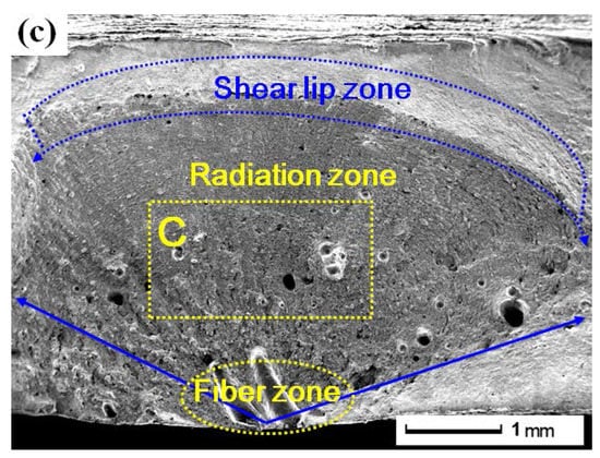 The fracture occurs easily at the weakest region of the material and the fracture morphology represents the whole process of the fracture. Lots of fracture problems can be studied through analysis of fracture morphology, including the reason, characteristic, mode, toughness, stress state, and crack propagation rate [14].