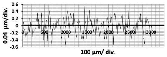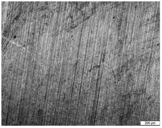 The optical microscopy results and the profile of surface roughness graphs for the global optimum (cutting speed vc = 250 m/min, depth of cut ap = 1.0 mm, and feed rate fr = 0.08 mm/rev) are presented in Figure 14 and Figure 15.