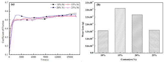 Influence of Ni content on (a) coefficient of friction and (b) wear lossof the coatings.