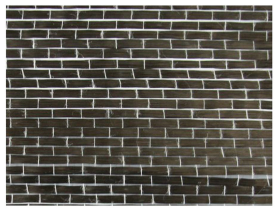 Fiber reinforced CBPC composites had an excellent flexural capacity in the tests. As well, fiber reinforced CBPC composites had better ductility compared to the pure CBPC matrix paste. Based on the experimental results, the modulus of elasticity of the sample without the fiber was 2.92 GPa. As the layers of the carbon fiber sheet were increased from 1 to 3, the elastic modulus significantly increased from 5.77 GPa for one layer, 8.31 GPa for two layers, and 10.88 GPa for three layers. As shown in Figure 4, the failure mode of the control specimen was the brittle fracture. Specimens with continuous fiber had a significant number of cracks in from the middle of the specimen that formed because of the constraint action of the continuous carbon fiber. There are small gaps in the carbon fiber sheets as shown in Figure 5 that allow more of the CBPC paste to penetrate. This additional penetration of CBPC likely provides strong bonding between the fiber and matrix. Similar to the short PVA fiber results, phosphate-based continuous fiber composites had high ductility and also gave good resistance to flexural deformation.