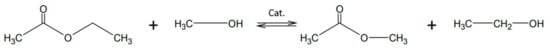 Ethyl acetate methanolysis as a model transesterification reaction.