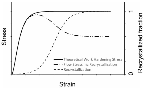 It has been shown that the aforementioned models are capable of capturing experimental characteristics of hot deformation tests like the peak strain, peak stress and steady state stress [14,15,16]. However they cannot be used for real process simulations because transient process conditions cannot be considered. Furthermore, they consider DRX as a “finite” strain-based process which finishes at the steady state. In reality, DRX isn’t finished at the steady state. At the steady state stress, the rate of dislocation generation and rate of recovery and recrystallization are in equilibrium [17] and recrystallization is ongoing with a constant rate.