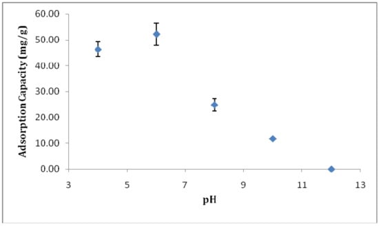 Effect of pH on the static adsorption capacity of PVA/PMA (80/20) membranes for lysozyme solutions (0.2 mg/mL).