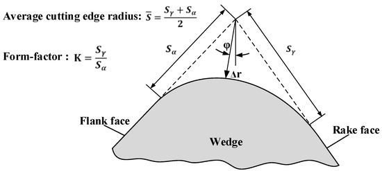 - Denkena, B.; Köhler, J.; Mengesha, M.S. Influence of the cutting edge rounding on the chip formation process: Part 1. Investigation of material flow, process forces, and cutting temperature. Prod. Eng. Res. Dev. 2012, 6, 329–338. [Google Scholar] [CrossRef]