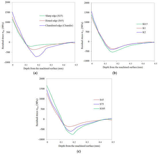 5.3. Effects of Cutting Edge Microgeometry on the Variation of Residual Stress