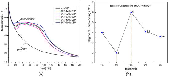 - DSP is an effective nucleating agent to SAT, which can effectively suppress the degree of undercooling of SAT. When the DSP’s addition content is 2 wt %, the degree of undercooling of SAT can be reduced to 2 K.