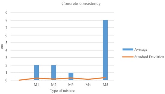 Figure 4 shows the standard deviation values of the experiment. Average values are considered in the range from 0.5 to 2 cm. Three mixtures are present within this range, while M4 is below and M5 is very above.