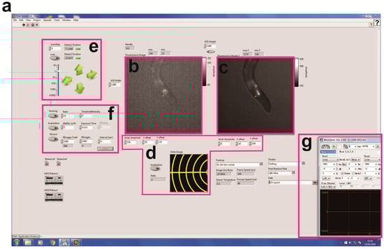 - Ben Arous, J.; Tanizawa, Y.; Rabinowitch, I.; Chatenay, D.; Schafer, W.R. Automated imaging of neuronal activity in freely behaving Caenorhabditis elegans. J. Neurosci. Methods 2010, 187, 229–234. [Google Scholar] [CrossRef] [PubMed]