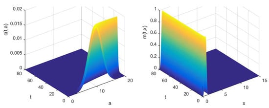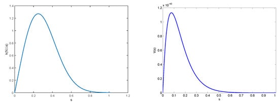 Finally, values for maturation threshold is chosen to be and the value of parameter . Representations of function V and k are given in Figure 8.