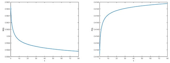 Evolutions of collagens and are represented in Figure 4, while evolutions of total population M(t) and P(t) are shown in Figure 5.
