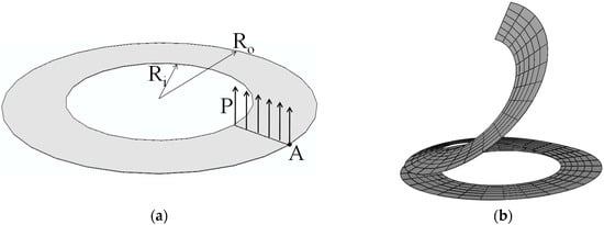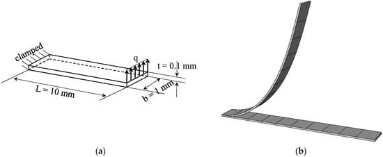 - Betsch, P.; Gruttmann, F.; Stein, E. A 4-node finite shell element for the implementation of general hyperelastic 3D-elasticity at finite strains. Comput. Methods Appl. Mech. Eng. 1996, 130, 57–79. [Google Scholar] [CrossRef]