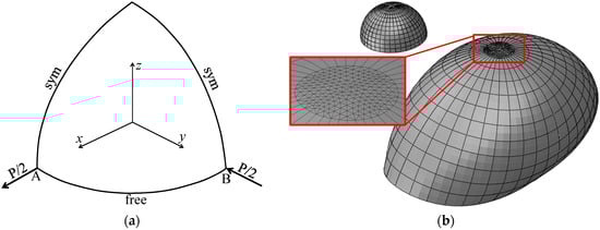 - Sansour, C.; Kollmann, F.G. Families of 4-node and 9-node finite elements for a finite deformation shell theory. An assessment of hybrid stress, hybrid strain and enhanced strain elements. Comput. Mech. 2000, 24, 435–447. [Google Scholar] [CrossRef]