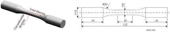 Fatigue tests were performed to investigate the effect of principal residual stress on fatigue performance of machined components. Although Hua et al. [21] suggested that the cutting speed was not the dominant factor influencing the surface roughness and Moussaoui et al. [22,23] demonstrated that the surface roughness Ra had no influence on the fatigue life, the effect of surface roughness on fatigue performance was eliminated by two steps in this work. Firstly, the specimens machined under the lower feed rate 0.075 mm/rev were chose in fatigue tests, because the feed rate was the dominant factor affecting the surface roughness [24,25]. Then the machined specimens with lower feed rate used in fatigue tests were polished by hand to remove the scratches and the concentration of stress generated during machining. The axial fatigue tests were conducted on a high-frequency fatigue testing machine PLG-100 (Letry, Xi’an, China) at room temperature. The dimensions of fatigue test specimens were shown in Figure 1. During the fatigue tests, a dynamic sinusoidal load was applied on the specimens, and the maximum tension stress was 1237 MPa. The loading frequency was 108~114 Hz, and the cycle stress ratio R was set 0.1. When the specimen fractured in the fatigue test, the number of cycles was recorded as its fatigue life. At least three specimens were tested for each cutting condition to eliminate the random error in the present work.