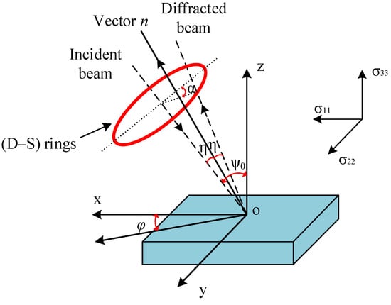 where, 2η is the semi-angle of D-S ring, φ and ψ angles are defined as the in-plane direction, and the angle between specimen normal and incident beam, respectively, as shown in Figure 2.
