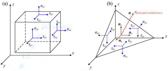 Residual stress for one point in solid body (a) normal residual stresses and (b) principal residual stress.