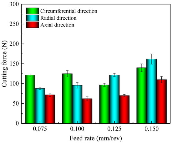 Cutting forces at different feed rates for the fixed cutting speed of 80 m/min.