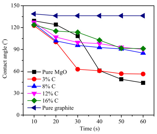 Liu, Z.; Yu, J.; Yang, X.; Jin, E.; Yuan, L. Oxidation Resistance and Wetting Behavior of MgO-C Refractories: Effect of Carbon Content. Materials 2018, 11, 883. https://doi.org/10.3390/ma11060883