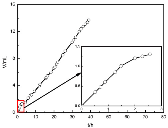 The corrosion rate of sample can be evaluated by the volume of the hydrogen collected in situ [32]. Figure 6 shows the volume of hydrogen generated by AZ91D immersed in simulated solution. In the first 1.5 h, the volume of hydrogen has a rapid growth, suggesting that the corrosion rate was fast. During 1.5–2.5 h, the volume increases slowly, indicating that the corrosion rate slowed down. After that, the volume of hydrogen extends a certain value per unit time, implying that the corrosion rate kept stable. This is in good agreement with the results obtained from OCP and EIS measurements.