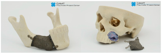 The capabilities, based on processing biocompatible metal alloys, to produce objects with diversified structure, designed and manufactured to support the growth of functional bone tissue with geometries defined by computer 3D models, have created a potential for solving many problems in implantology. Based on CT data, the degree of bone tissue damage and the size and shape of the bone resection was determined. Then, obtained external geometry of the bone defect was filled with the replicated BSF structure. According to obtained results, we have chosen the ‘A3 type’ sample as they display the best geometrical accuracy and do not show geometry-dependent anisotropy of properties. Examples of customized jaw and facial implants for oncological treatment designed on the basis of the results of this study are shown in Figure 14.