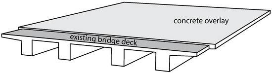Strengthening measures of existing concrete structures by adding concrete overlays (Figure 1) are becoming more and more important. The primary reasons are the age of existing concrete bridges [1,2], the fast increase of the traffic volume during the last decades, particularly with respect to heavy traffic [3,4], the increasing permissible gross vehicle weights [3,5] and the increasing numbers of authorized heavy goods transports [3,4,5].