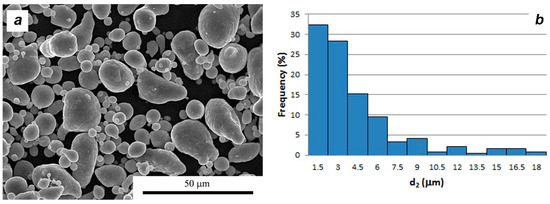 Morphology (a) and particle size distribution (b) of AA6061 powder.