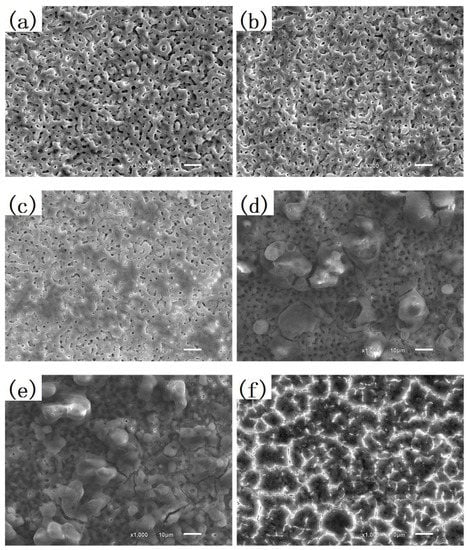 - Lu, J.P.; Cao, G.P.; Quan, G.F.; Wang, C.; Zhuang, J.J.; Song, R.G. Effects of voltage on microstructure and corrosion resistance of micro-arc oxidation ceramic coatings formed on KBM10 magnesium alloy. J. Mater. Eng. Perform. 2018, 27, 147–154. [Google Scholar] [CrossRef]