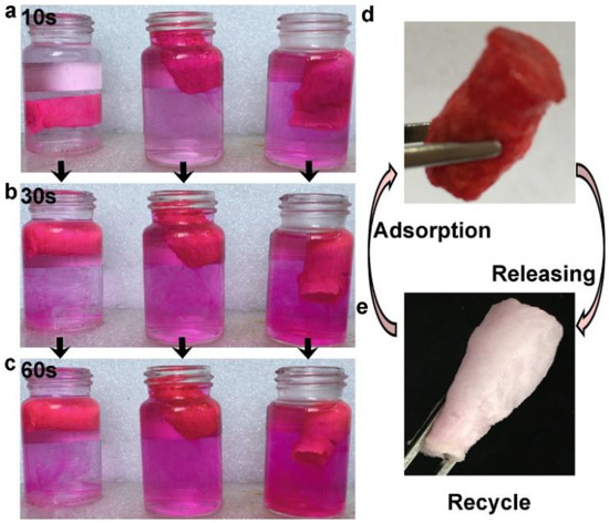 - Chang, H.C.; Qin, J.L.; Xiao, P.S.; Yang, Y.; Zhang, T.F.; Ma, Y.F.; Huang, Y.; Chen, Y.S. Highly reversible and recyclable absorption under both hydrophobic and hydrophilic conditions using a reduced bulk graphene oxide material. Adv. Mater. 2016, 28, 3504–3509. [Google Scholar] [CrossRef] [PubMed]