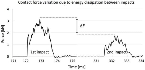 Contact force variation due to energy dissipation between impacts events.