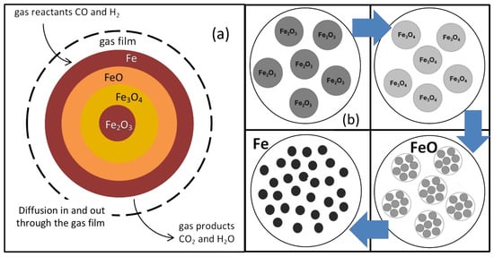 - The number of reduction steps. This is related to the intermediary iron oxides taken into account. Works with one reduction step consider the direct transformation of hematite to iron, those with two steps consider further the presence of wustite, whereas those with three steps consider also magnetite.