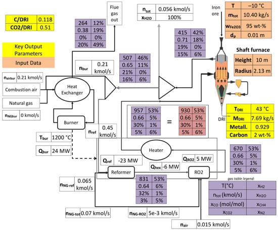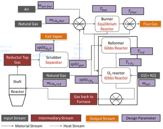 - Alhumaizi, K.; Ajbar, A.; Soliman, M. Modelling the complex interactions between reformer and reduction furnace in a midrex-based iron plant. Can. J. Chem. Eng. 2012, 90, 1120–1141. [Google Scholar] [CrossRef]