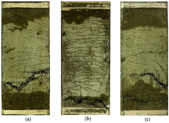 The suitable amounts of superplasticizer for the uniform distribution of MGFs and steel fibers were first determined based on the slump and slump flow tests. The electrical resistance of HPFRCCs is greatly influenced by the distribution of electrically conductive fillers or fibers [15,27,29,31]; thus, the suitable slump flow and slump of HPFRCCs should be carefully determined for the uniform distribution of fillers and fibers because the distribution of fibers is dependent upon the workability of SFRCs [50]. Moreover, the HPFRCC slump was greatly influenced by the accumulation of fibers, whereas the slump flow was more affected by the viscosity and flowability of the matrix and by the distribution of fibers.