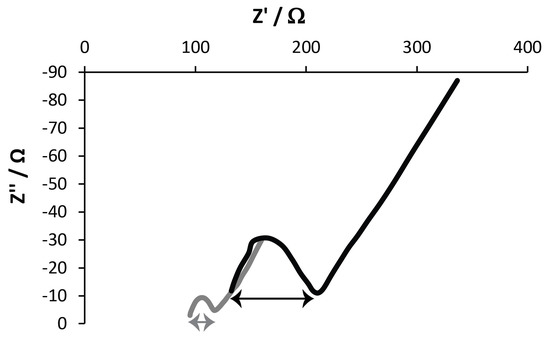 For EIS measurements, the PBS also contained [Fe(CN6)]3−/4− (5 mmol L−1), and measurements were performed with an open-circuit potential of 230 mV, with an amplitude of applied potential perturbation of 10 mV in the frequency range of 0.1–105,000 Hz. The Nyquist plots were obtained to ascertain the electron-transfer resistance (Ret).
