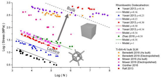 - Yavari, S.A.; Wauthle, R.; van der Stok, J.; Riemslag, A.C.; Janssen, M.; Mulier, M.; Kruth, J.P.; Schrooten, J.; Weinans, H.; Zadpoor, A.A. Fatigue behavior of porous biomaterials manufactured using selective laser melting. Mater. Sci. Eng. C 2013, 33, 4849–4858. [Google Scholar] [CrossRef] [PubMed]