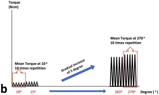 To confirm the 150-degree angle set at the dedicated motor as a safety margin, the instruments were rotated up to 150-degrees and immediately returned to original position at a constant 2 rpm. Acquired data at 1000 Hz was plotted (Figure 2c,d). Sample size was 15 for each file system.
