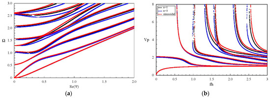 Based on the previous formulations, the computer program in terms of the presented method has been written using Mathematica software to calculate the dispersion and phase velocity curves for the FGPPM plate composed of CoFe2O4 (top) and Ba2TiO3 (bottom), h = 1 mm. The material parameters are from literature [] and are listed in Table 1.