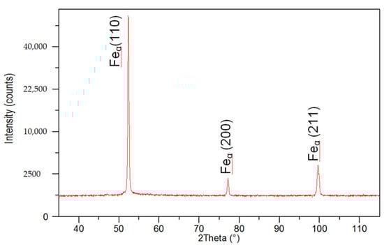 The X-ray phase analysis revealed that the base material and the weld made using the laser beam were entirely composed of the ferritic phase (Figure 13).