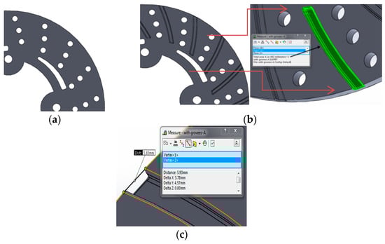 3D-CAD geometries: (a) without Radial grooves; (b) with radial grooves; and (c) optimal dimensions and areas of grooves.
