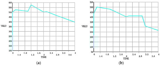 The maximum value recorded during this FE simulation for von Mises stresses at disc surface temperature 77 °C in the case without grooves is 202.123 N/mm2 while with grooves is 137.076 N/mm2. A significant reduction has been observed from ANSYS results. At higher speeds, the von Mises and stress are likely increased because of more frictional heat generated at the time of maximum braking time and pressure applied. The Transient finite element simulation gives variation of temperature distribution with respect to time as shown in Figure 12.