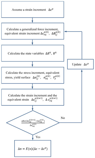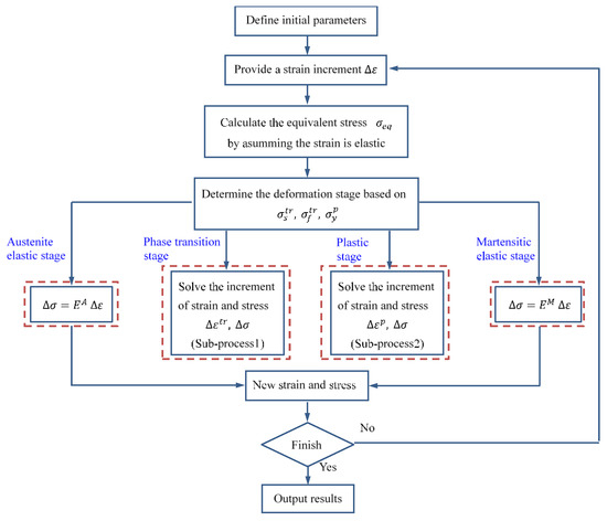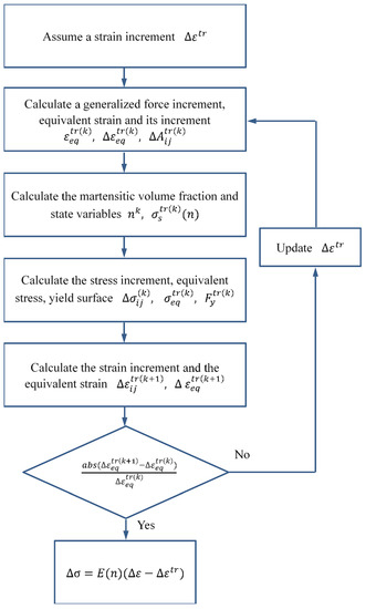 In addition, the flow chart for solving the phase transition stage and plastic stage are provided in Figure 2 and Figure 3, respectively.
