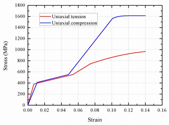 where is the equivalent strain of phase transition, and εm is the maximum strain of phase transition under uniaxial loading. The relationship of initial phase transition stress and the final one is expressed as follows