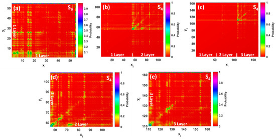 Figure 6b,c,e,f) indicate that the corresponding electron−hole pairs are localized both along the diagonal elements and the off-diagonal elements. As a result, a mixture of intralayer local excitation within the respective layers coupled with interlayer CT between the different layers occurs.